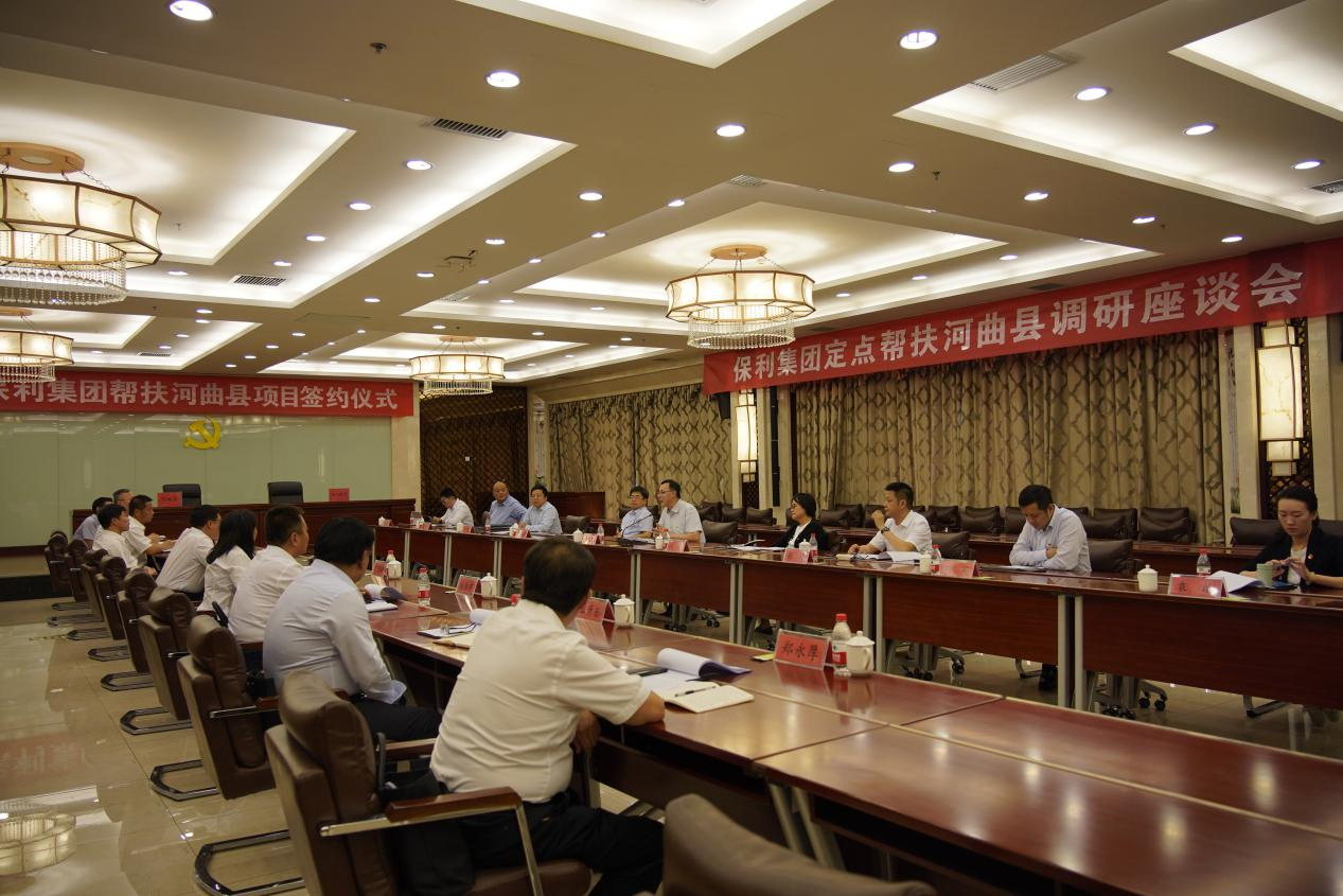 座谈会上,保利文化党委副书记、纪委书记徐碚,保利国际纪委书记陈育文分别代表保利集团,与河曲县、五台县就启动2021年新一轮重点帮扶项目,签订合作协议。