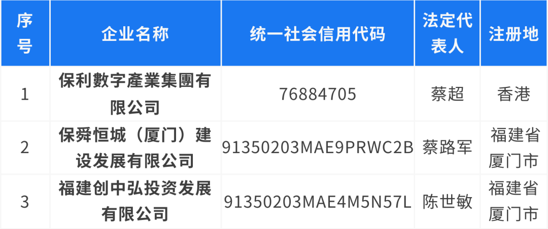 经保利集团核实,下表所列公司及其下设各级子公司均与保利集团及所属公司无任何隶属与股权关系,也不存在任何投资、合作、业务等关系,其一切行为均与保利集团无关。请广大社会公众提高警惕,注意防范风险,如发现其违法犯罪行为,请尽快到公安机关报案。